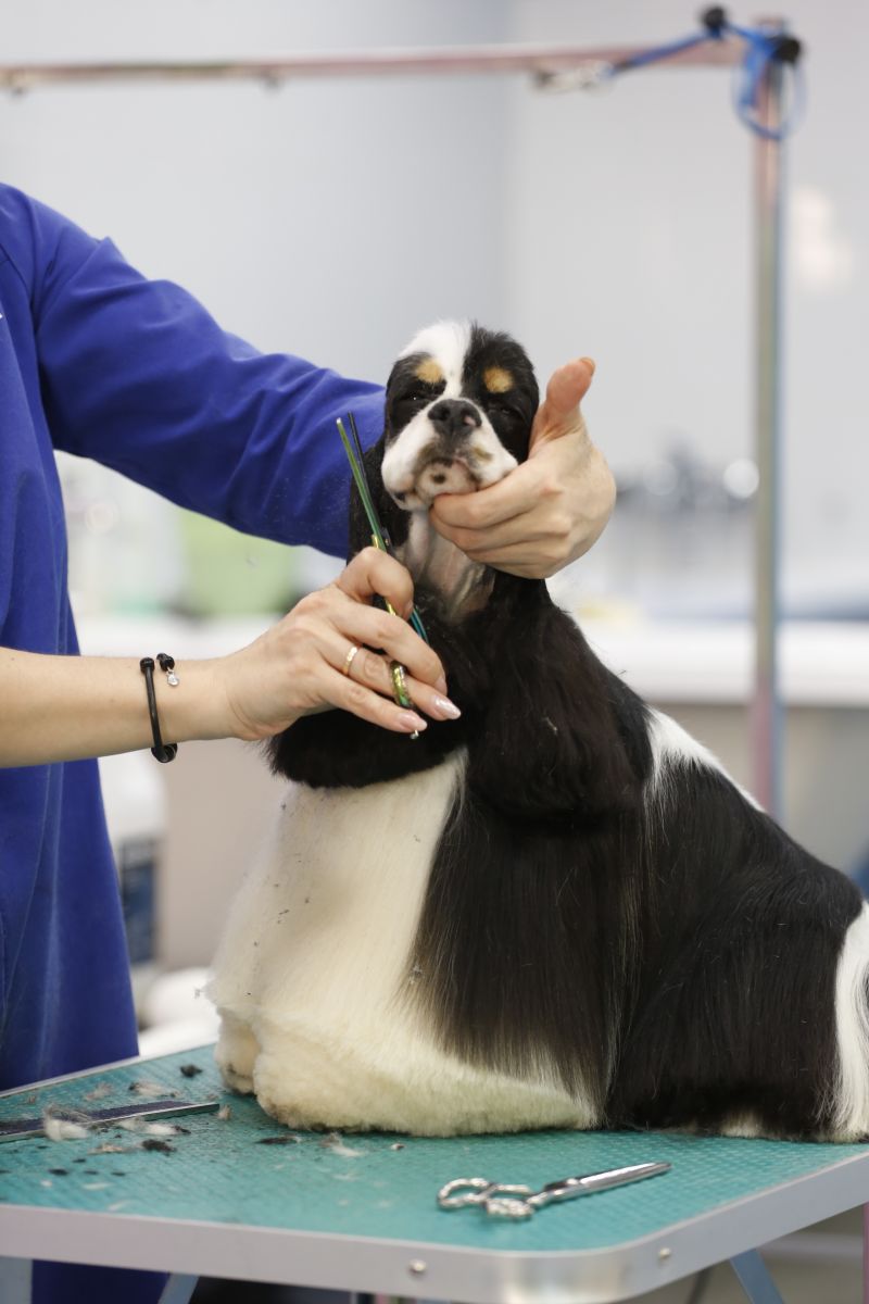 Первым заводчик подстригает питомцу когти, моет и сушит феном приучая к процедурам. К грумеру необходимо обратиться после постановки всех обязательных прививок, спустя 14 дней после крайней вакцинации в 4‑х месячном возрасте.